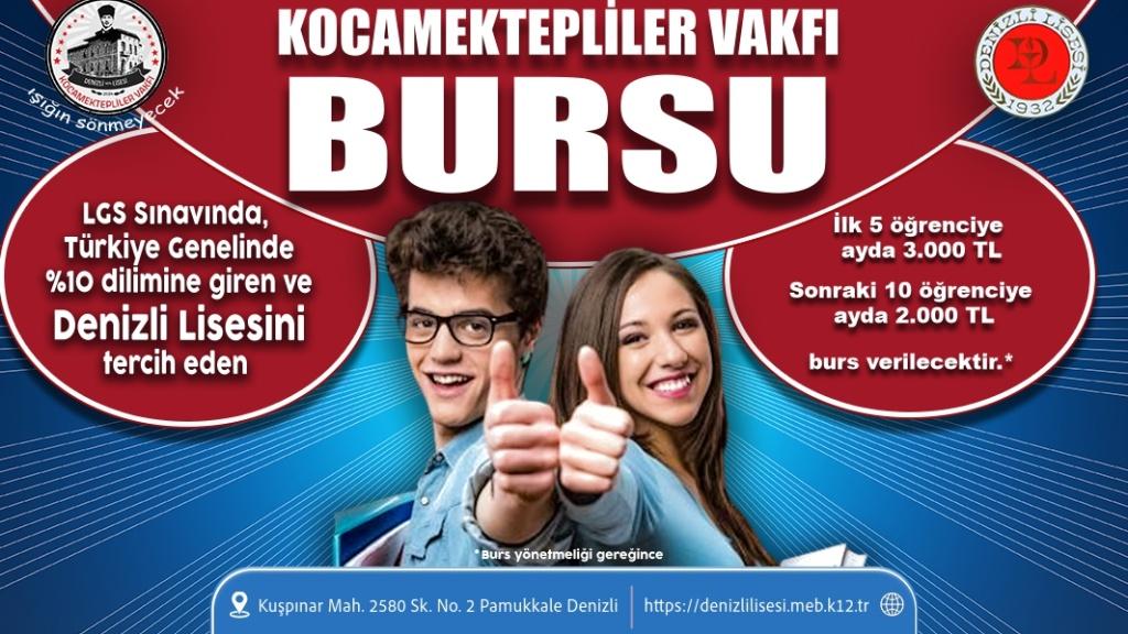 2025-2026 Eğitim Öğretim yılında Denizli Lisesini tercih eden 9. sınıf öğrencilerimize burs veriyor, birlikte gelecek hayallerinizi gerçekleştirmeye davet ediyoruz.